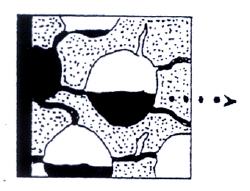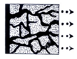 Gut ausgebildetes Kapillarsystem mit Kapillaren unterschiedlichen Durchmessers: Großes Wasseraufnahmevermögen, großes Feuchtigkeitsabgabevermögen (z.B. Ziegel, Gips) |