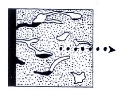 Struktur mit kleinen, abgeschlossenen Poren und Kapillaren: Geringes Wasseraufnahmevermögen, geringes Feuchtigkeitsabgabevermögen (z.B. Schwerbeton, Blähton-Beton) |