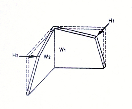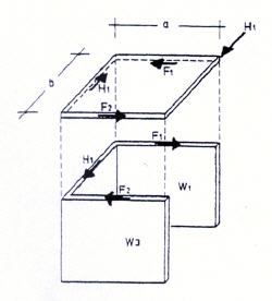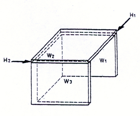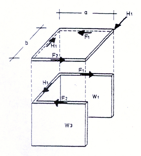 Belastung wirkt horizontal zur Ebene. Die Übertragung der auftretenden Lasten erfolgt durch flächig verteilte Zug- und Druckkräfte (z.B. tragende Wände zur Ableitung der Eigenlasten). |