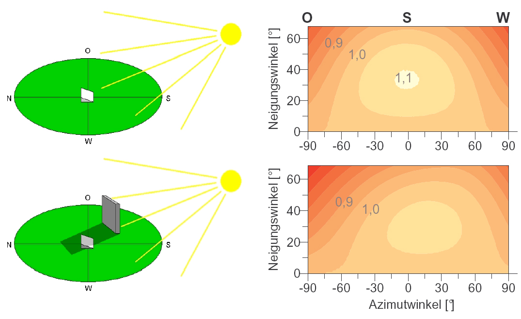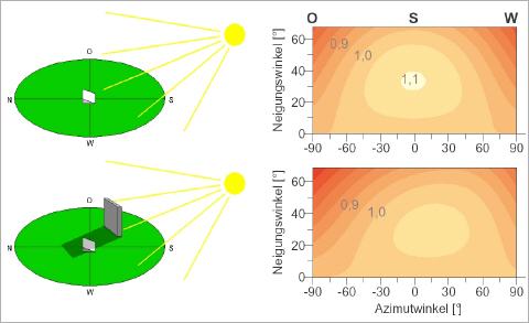 Eine möglichst genaue Abschätzung der nutzbaren Energiemenge ist Voraussetzung für eine zuverlässige und wirtschaftliche Planung solarthermischer und photovoltaischer Anlagen. Simulationen der Einstrahlung unter Berücksichtigung der Rahmenbedingungen am vorgesehenen Standort erlauben eine Optimierung der Empfangsflächenorientierung und führen damit zum größtmöglichen Energieertrag.