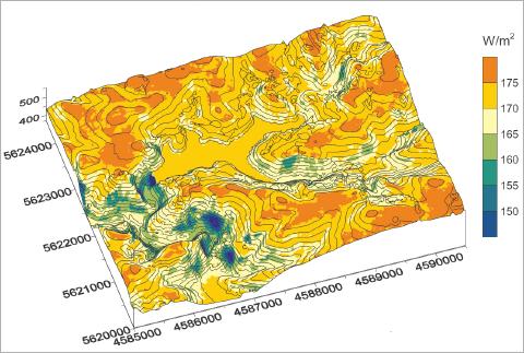 Für agrarwissenschaftliche und ökologische Berechnungen werden hoch aufgelöste Landschaftsräume (s.o.) aber dennoch ganze Landschaftsräume umfassende Informationen über die solare Einstrahlung benötigt. Lokale Exposition und Abschattungen durch das Relief müssen berücksichtigt werden.