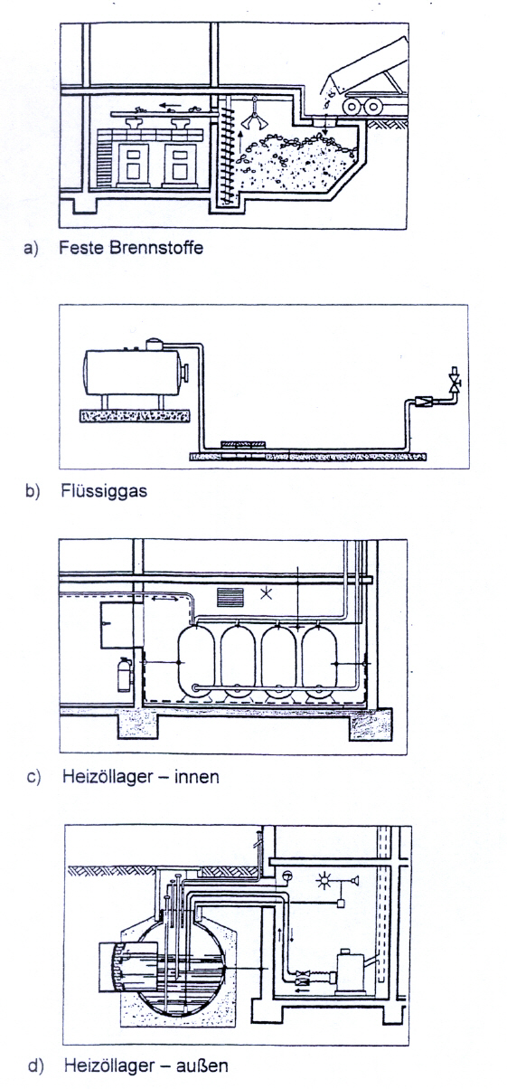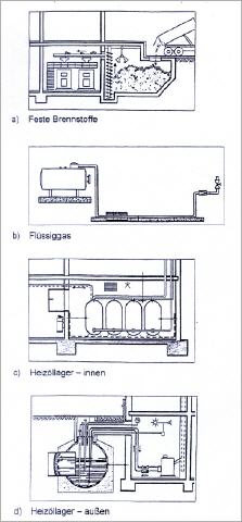 Heizöl | Einzelöfen, Ölkessel | Lagerraum für Öltanks, ggf. auch Öltanks im Außenbereich |
