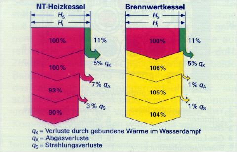 Unabhängig vom Brennstoff besitzt dieser Spezialkesseltyp einen Feuerraum, in dem die Wärme überwiegend durch Strahlung übertragen wird, und einer dahinter liegenden Nachschaltheizfläche, in der die Wärme überwiegend durch Konvektion auf das Heizwasser übergeht. Je nach Größe der Nachschaltheizfläche (und der Schornsteinsituation) sind die Abgase beim Verlassen des Kessels auf 80 bis 210 °C abgekühlt (außer bei Brennwertsystemen). Wird jedoch der Luftüberschuss vergrößert, sinkt die Flammentemperatur und dadurch die im Feuerraum übertragene Wärmemenge. Die Nachschaltheizfläche kann die Minderleistung im Feuerraum nicht voll ausgleichen. Als Folge davon steigt die Abgastemperatur am Kesselende und der Kesselwirkungsgrad verringert sich.
