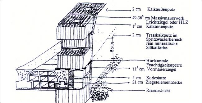 Das einschalige Mauerwerk mit Außenputz ist eine einfache Konstruktion, die insbesondere bei Gebäuden der 20iger bis 70iger Jahre weit verbreitet ist. Der Außenputz wirkt dabei als Schlagregenschutz, dichtet offene Fugen gegen Wind- und Schalldurchgang ab und bildet darüber hinaus ein sehr flexibles Gestaltungselement für die Außenfassade.