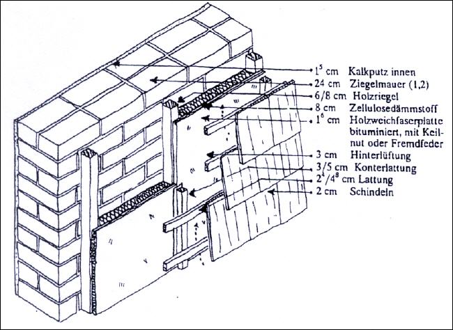Ziegelmauerwerk Wärmedämmung und Schindeln