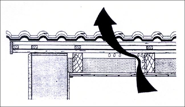 Unter Wasserdampfkonvektion versteht man den direkten Eintrag von Feuchtigkeit ins Gebäudeinnere durch die Außenluft. Bevorzugt geschieht dieses durch Fugen oder baulich bedingte Undichtigkeiten, insbesondere bei unsachgemäßer Abdichtung im Dachbereich oder bei Fenstern. Die Triebkraft für diesen Prozess ist ein Luftdruckunterschied zwischen innen und außen. Die Wasserdampfkonvektion kann wesentlich entscheidender für Bauschäden sein, als die Wasserdampfdiffusion. |