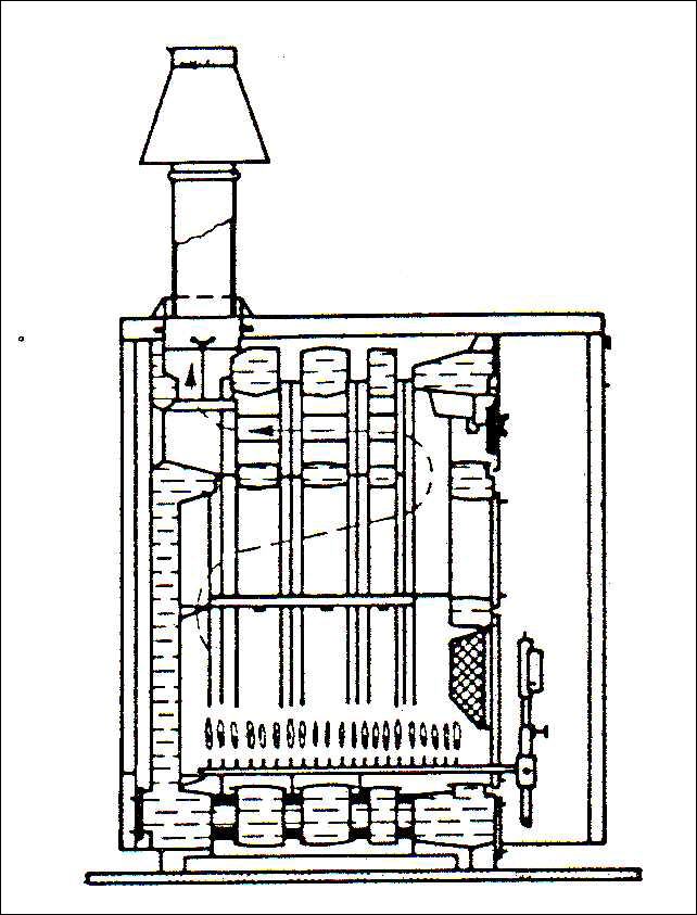 ![]() Gasheizkessel mit Brennern ohne Gebläse Schematische Darstellung eines athmosphärischen Gaskessels |