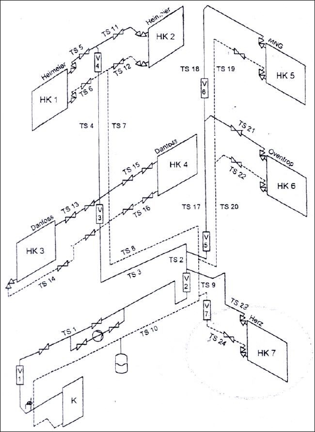 Aufgrund von unterschiedlichen Entfernungen zwischen dem Wärmeerzeuger und den einzelnen Verbrauchern (Heizflächen) kommt es zu unterschiedlichen Druckverhältnissen im System. Verbraucher, die in der Nähe der Heizungspumpe angeordnet sind, werden mit einem höheren Anlagendruck beaufschlagt als entfernter liegende. Da sich in einer nicht einregulierten Anlage ein Grossteil der Wärme bereits auf die näheren Verbraucher aufgeteilt hat, kann es zu einer Unterversorgung der letzten Verbraucher im Netz kommen. |