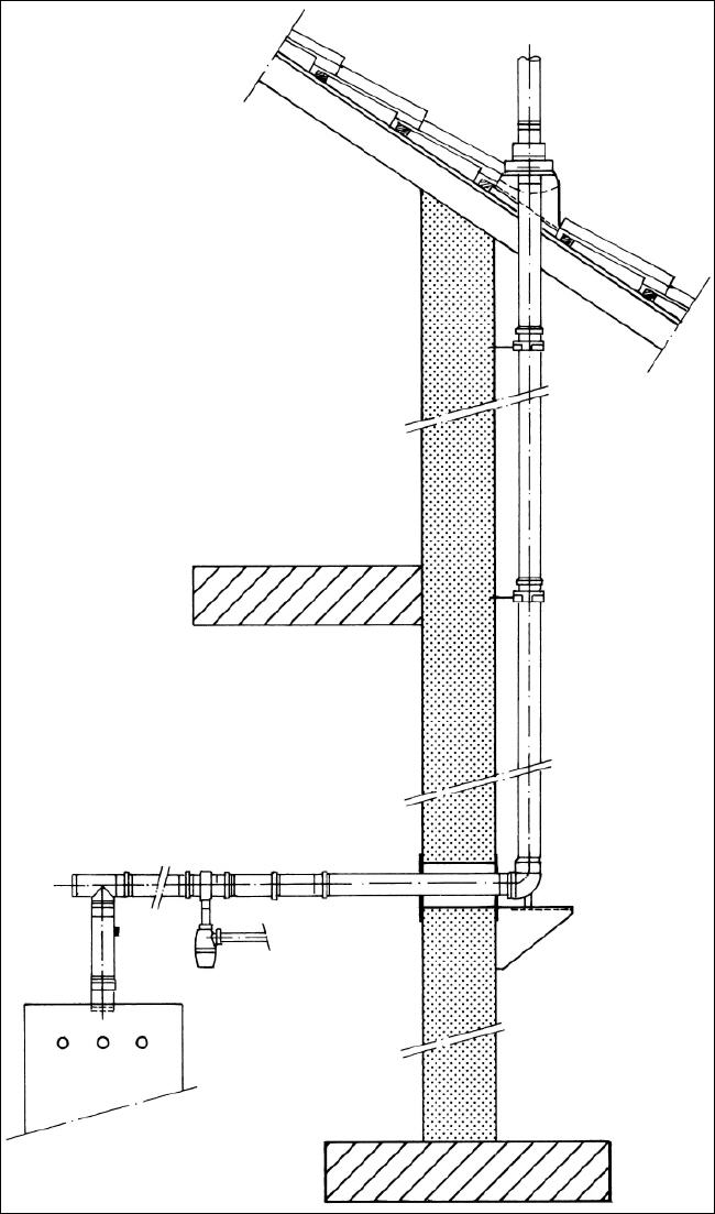 Abgasleitung Leitungsweg bei Montage außerhalb von Gebäuden |