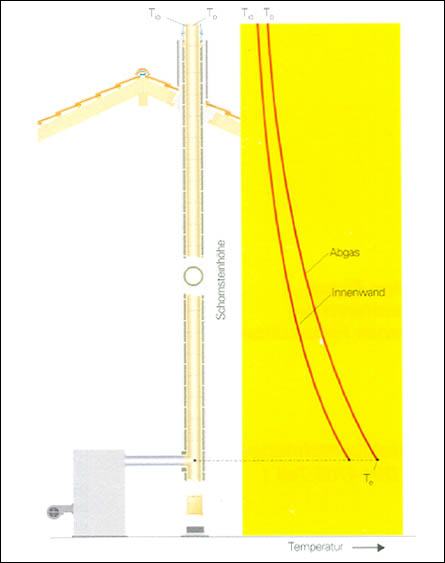 Auf den Weg vom Wärmeerzeuger über das Verbindungsstück und den Schornstein kühlen die Abgase ab. Die auftretenden Wärmeverluste der Abgase werden im Wesentlichen von vier Kriterien bestimmt: