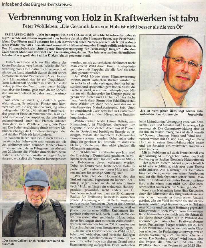 Aus welchen Gründen auch immer verweigert die örtliche Presse immer noch eine ausgewogene Berichterstattung. Mit breiten Füßen dürfen Seifert und Co. nach wie vor Thesen zum Besten geben. Die Heizwerksgegner werden regelmäßig ausgebremst, eine ausgewogene Erwiderung wird mit breiten Füßen verhindert. Zu erwarten wäre von einem sich selbst ernst nehmenden Journalismus, dass er nicht nur nach der Pfeife der Obrigkeit tanzt und die Vorstellungen von Seifert und Co. vertritt. Noch dazu wo aktuell jeder "normale" Bürger mit geringst möglichem Engagement und Internetanschluss sich zu diesem Thema bereits selbst informieren kann. Immer noch ist z.B. diese Seite sehr gut frequentiert. Auch andere Quellen im Internet weisen den Unsinn der Seifertschen Idee nach. Dem zuständigen Redakteur kann nur anempfohlen werden seinen beruflichen Ehrenkodex endlich in die Tat umzusetzen.